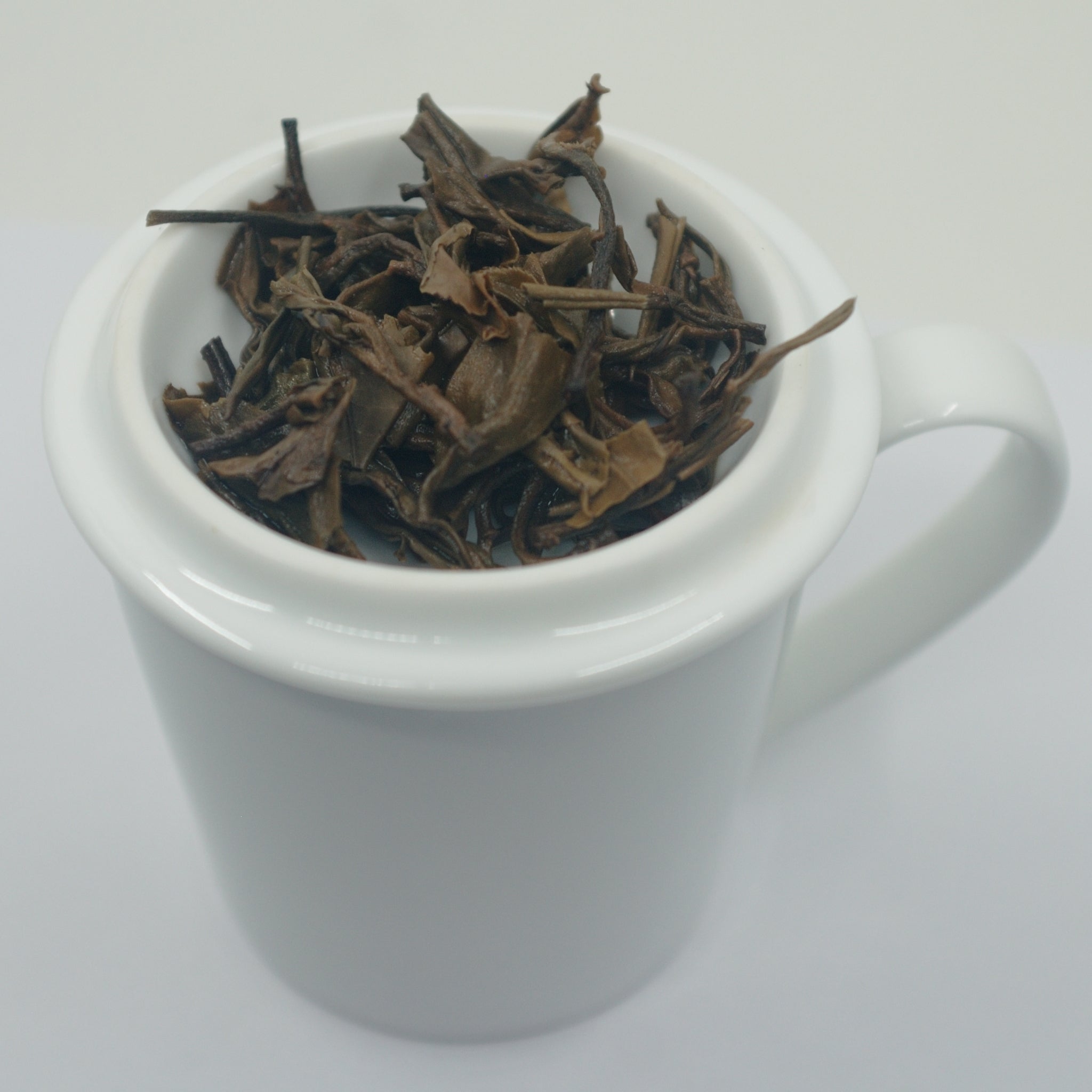 Zu Cake gepresste, grosse Blätter, grünlich-braun mit einigen hellen Stellen. Das Blatt riecht nach Laub und Blumen mit einem sanften Erdton. Grünbraunes Kraut mit einem süssen Duft und einer Note von saftigem Holz Die orangebraune Tasse riecht nach Laub und frischem Holz mit einem blumigen Anklang. Im Mund zeigen sich sehr dezente Tannine und eine ölige Konsistenz, die die Mundhöhle füllt, während im Abgang eine leichte Süsse anklingt. Ein Gefühl wie ein sonniger Spätsommertag. In weiteren Aufgüssen kommt eine leichte Note von frischer Erde auf. |